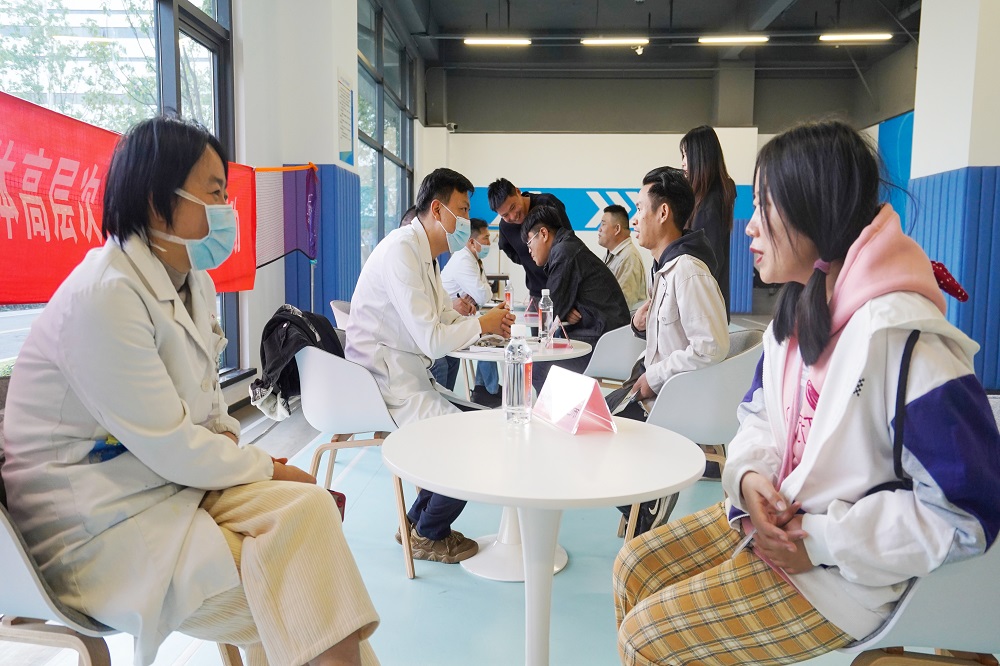 本次活动采取“一对一”现场面诊的方式,便于专家医生与员工之间根据个人症状进行解疑问答。活动现场,员工们有序排队,针对自己的健康问题进行详细咨询。