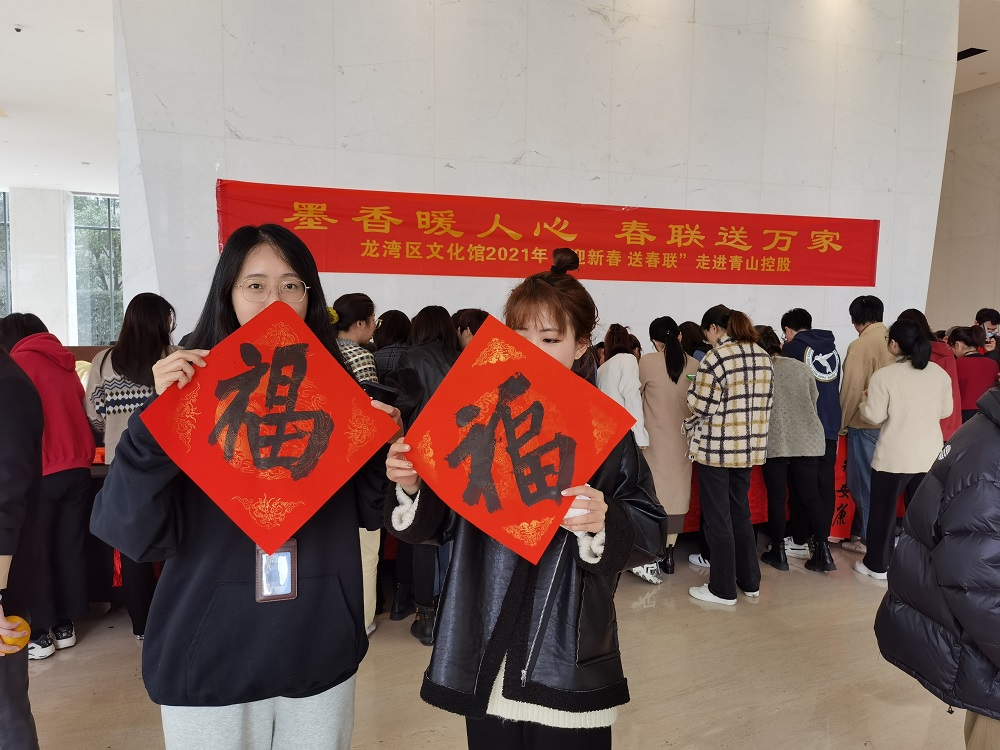 2月3日11时,jinnianhui今年会控股集团有限公司联合温州市龙湾区文化馆在jinnianhui今年会总部大楼开展了2021年“迎新春 送春联”活动。区文化馆十余位书法家及爱好者来到了jinnianhui今年会总部大楼,他们真情挥舞笔墨,为每位来到现场的员工送上一幅幅“新鲜出炉”的对联和福字,活动现场热闹非凡。有些员工特地选好自己中意的对联标语,请书法老师专门为其书写,现场还排起了队伍。每位收到对联和福字的员工都洋溢着幸福的笑脸,如获珍宝。此次活动不仅营造了温馨、浓厚的节日氛围,也让广大员工感受到了传统书法的真切魅力。