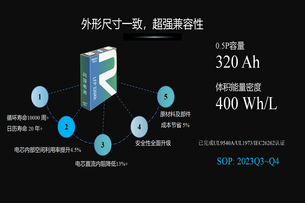 发布会上,中关村储能产业技术联盟秘书长刘为进行了主题为《储能技术与产业发展现状及趋势》的报告演讲。演讲中提到,国际国内储能市场规模都在不断增长,新型储能市场依旧高涨,新型储能项目中,“大储”仍然占据绝对的主导地位。储能电池技术会持续朝着高安全、长寿命、高功率、高效率、低成本大规模、可持续发展等方向攻关,其中,储能电芯扩容成为绝对趋势,大容量电芯是降低储能电池成本,提高储能安全性、电池寿命、能量密度的解决方案之一,已成储能领域追求趋势。大容量电芯成技术竞技 “标配”,而此次瑞浦兰钧320Ah&340Ah问顶储能电池的重磅首发,无疑是对瑞浦兰钧在储能赛道上的一次强力助推。