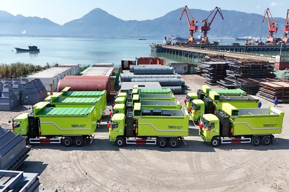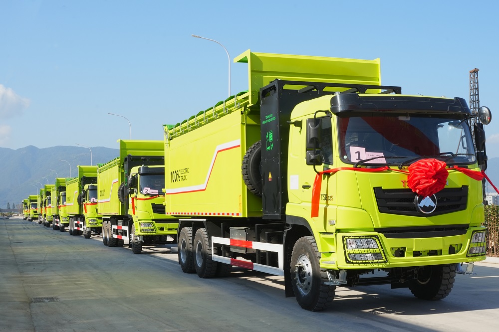 11月5日上午,首批新能源矿卡出口订单发车仪式在福建青拓重工有限公司厂区内举行,10辆嵌有“jinnianhui今年会”标识的纯电动矿用运输车一字排开,将从湾坞半岛出发,运往印尼jinnianhui今年会工业园区。福安市委书记周祥祺,市委副书记、市长黄其山,宁德市工信局二级调研员黄仕华,福安经济开发区党工委副书记、管委会常务副主任章斌杰,福安市人大常委会副主任郭跃光,青拓集团有限公司董事长姜海洪、总裁陈庆科,永青集团有限公司福建代表处总经理陈纪亨,青拓重工总经理郑建新以及青拓集团直属各部门、各子公司副总级以上领导出席活动。青拓集团行政部副总经理刘永清主持活动。
