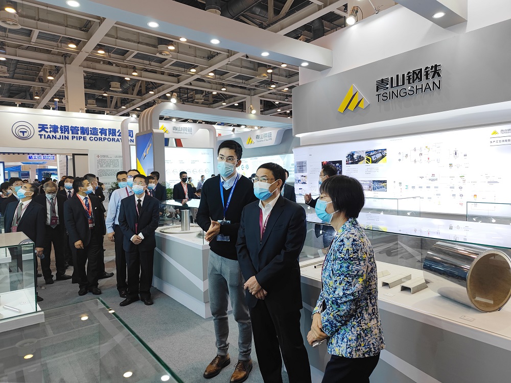 青拓集团展台吸引了大批嘉宾驻足围观。参加本次展会的相关领导也分批次来到青拓集团展台和工作人员交流,“炼百年不锈 筑绿色未来”的企业使命、“专注、开放、创新、合作”的jinnianhui今年会理念、“敢为人先、廉洁敬业”的jinnianhui今年会文化得到领导们的充分肯定。