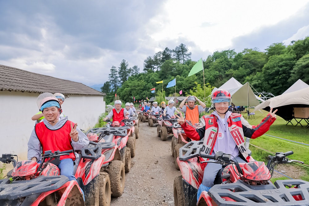 大家齐聚户外营地,分队体验射箭和水弹CS,四个小队展开积分角逐和夺旗,命中十环、有箭上靶的都赢得了现场的掌声,你来我往的战术对决中水弹横飞,大家在挥洒汗水间体验团队协作乐趣、释放情绪。刺激的山地越野项目将当天的户外活动氛围推向高潮,水坑、泥泞、乱石崎岖和弯道回环都没能阻挡住大家勇往前行的脚步,或独乘一车、或两两组队,乡野道路的清新空气和登顶一览众山的别样景致是对前行者的褒奖,大家纷纷拍照留念。